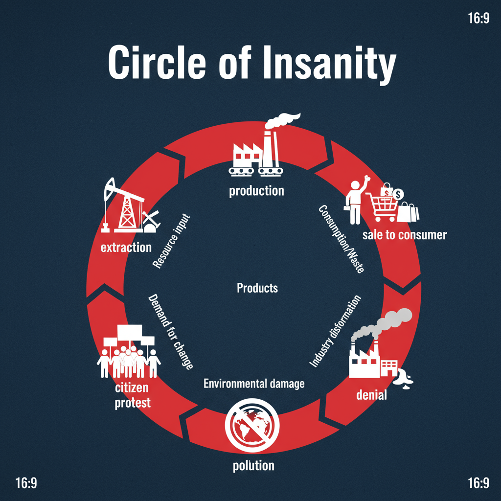 Consumers → trapped in petrochemical plastics, fake progress, health problems, and endless debt.